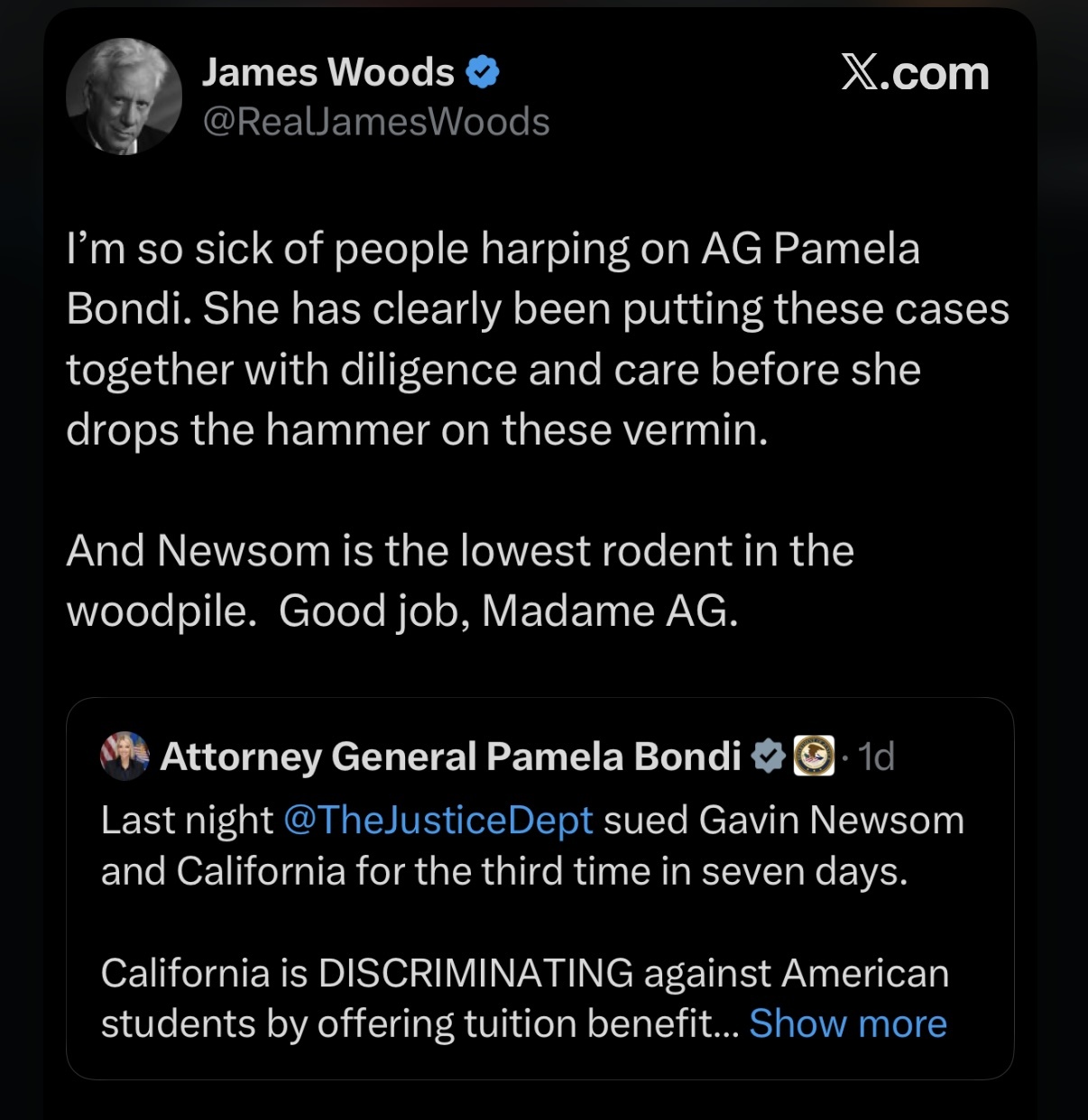 I’ve always liked and respected @RealJamesWoods but is this a joke? Bondi needs more time?