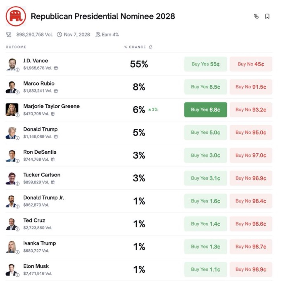 Many of my MAGA and MAHA brothers and sisters want to look the other way but this from Polymarket shows that what @RepMTG has been saying is resonating with a LOT of...