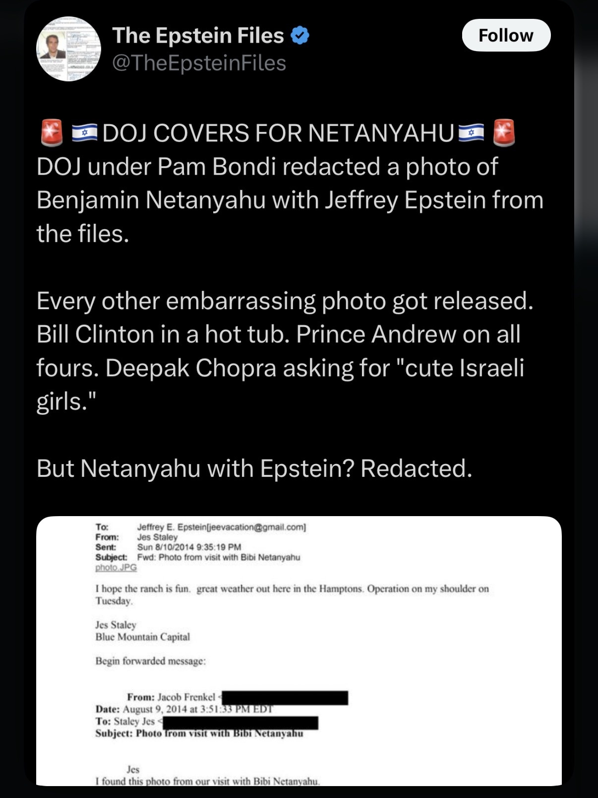 The most important part of this post is not the Epstein connection to Netanyahu—it’s the clear demonstration that the DOJ is illegally covering for their preferred political leaders and elites, an outright violation of the law.