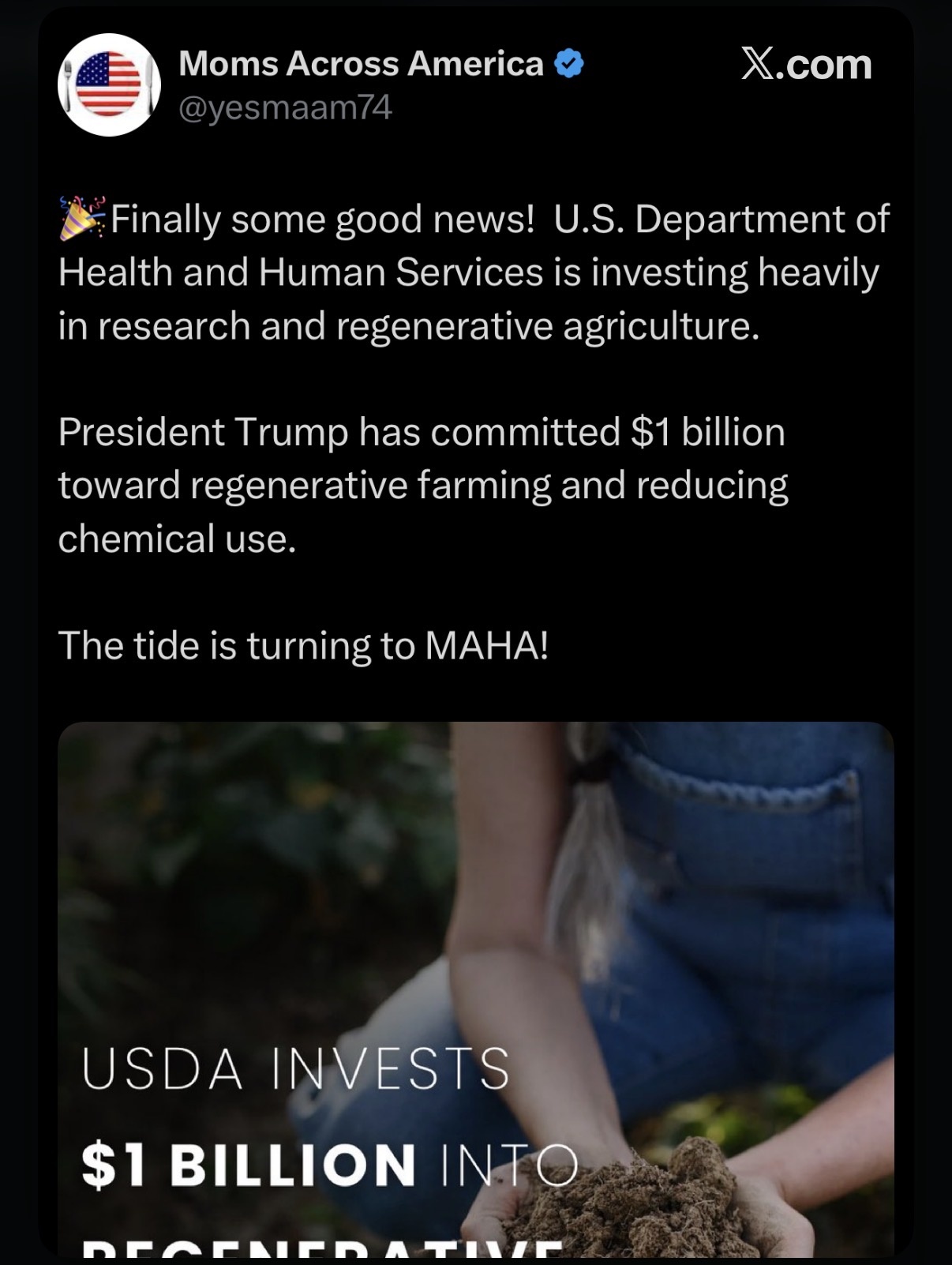 A $1 billion investment is a joke and is being done to save face. I appreciate and support Moms Across America, but it’s time MAHA quits cheering when we are given table scraps and starts demanding a real seat at the table.