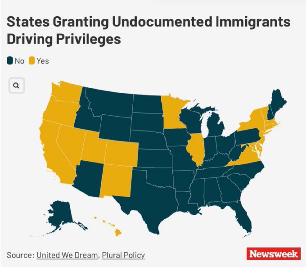 🚹 This map says it all. Some states are handing out driving privileges to undocumented immigrants.