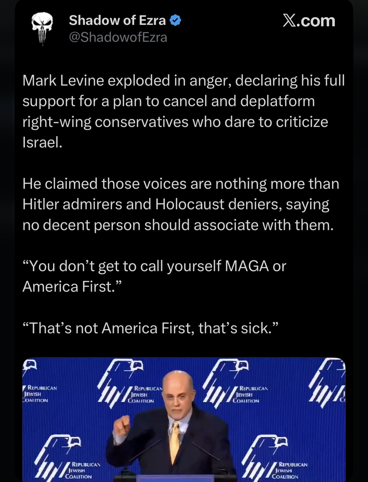 Levin has gone full leftist. You CANNOT be MAGA and pro censorship... ever.