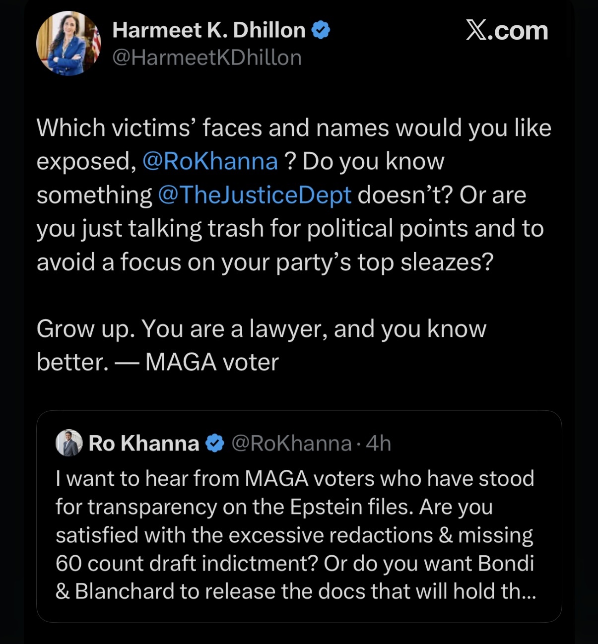 Harmeet Dhillon, you do too much great work to go down this path. We need people like you, and it would be far better if you just stayed out of it rather than trying to defend the indefensible.