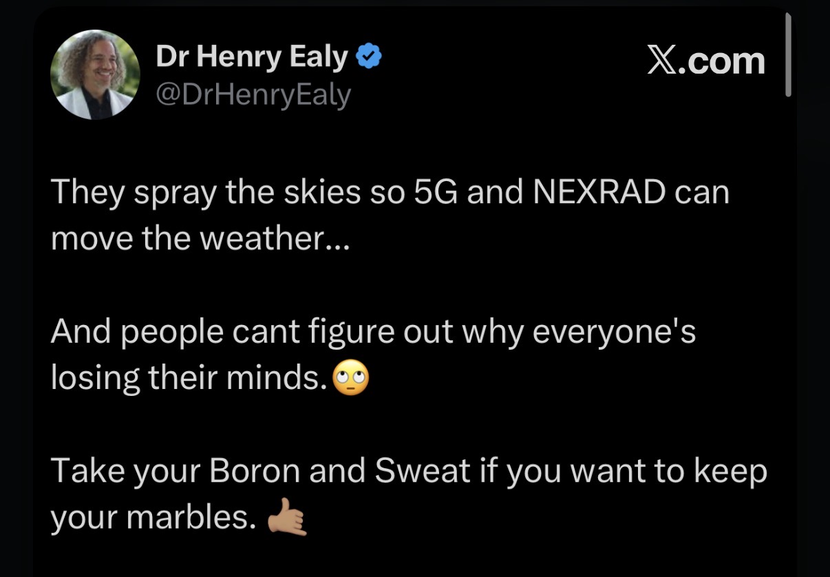 Chemtrails are real and the poisons they spray in the sky all falls somewhere. My friend @DrHenryEaly was one of the first to figure out what was happening with COVID and he’s ahead of the curve here again.