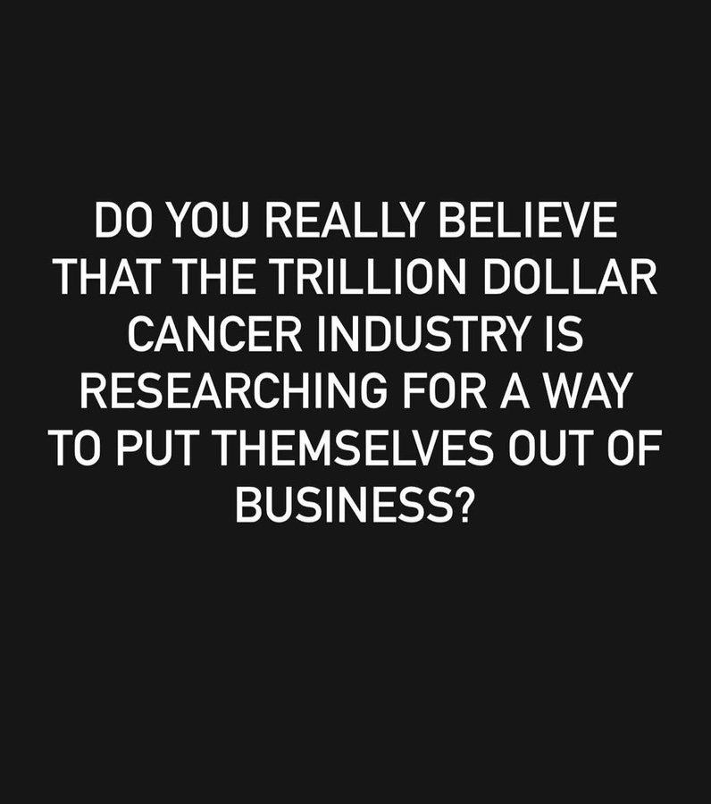 Chemotherapy and radiation bring in billions of dollars in revenue and some experts believe that the financial incentives to continue to recommend these treatments keep the scale tipped in their favor despite the fact that they are extremely toxic. One is a money generating approach, the other is not - so why would they engage in research that could potentially cut into (or decimate) the profits of a multibillion-dollar industry? Further, while chemo and radiation can be very effective, the side effects can cause a number of other issues including an increased likelihood of recurrence of cancer. Cancer does kill and chemo/radiation do frequently work well to stop it but what if there is another way that had fewer side effects? Drugs or supplements that could cure cancer without the need for other drugs to combat their side effects? It is certainly unseemly to discuss but it is inarguable that it would be a financial disaster for those making money from cancer if something like that were to become available.