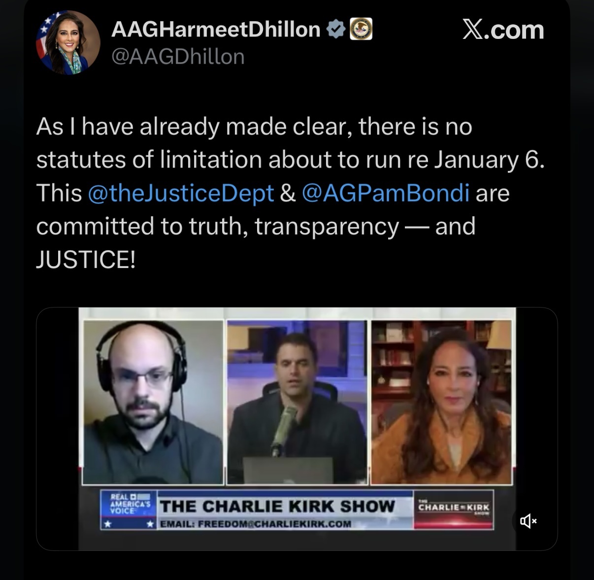 Deflections don't matter. On January 6, 2021, there were likely dozens of people involved in the J6 conspiracy, particularly around the FBI and its huge number of informant instigators. Many appear to have committed crimes that day, resulting in innocent J6ers going to jail, and not all were involved further. They may not have been ringleaders and would almost certainly not be part of an ongoing conspiracy, but—even if low-level—they likely committed crimes. You cannot say the statute won't run in some cases because your DOJ hasn't bothered to investigate it.