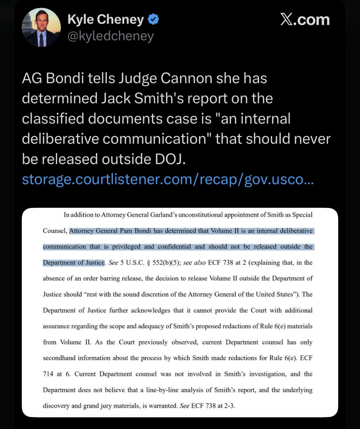 Why is crooked Pam Bondi defending crooked Jack Smith? Is @realDonaldTrump going to fire her or not? Are we MAGA, or is the WEF just taking over?