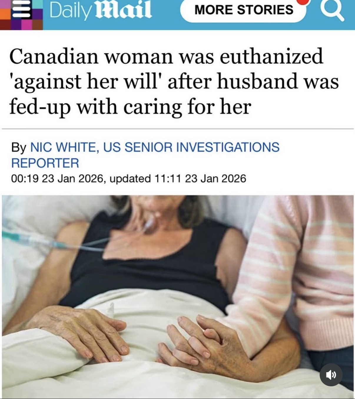 Nothing to see here. Just a woman reportedly euthanized against her will because caring for her became inconvenient. Totally normal.