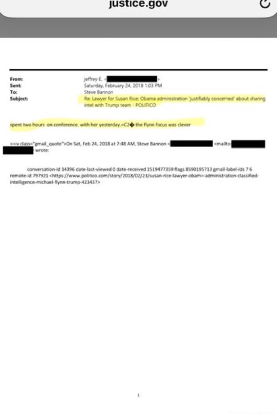 In what context was Epstein talking to Bannon about Obama and Susan Rice going after @TrueGenFlynn?