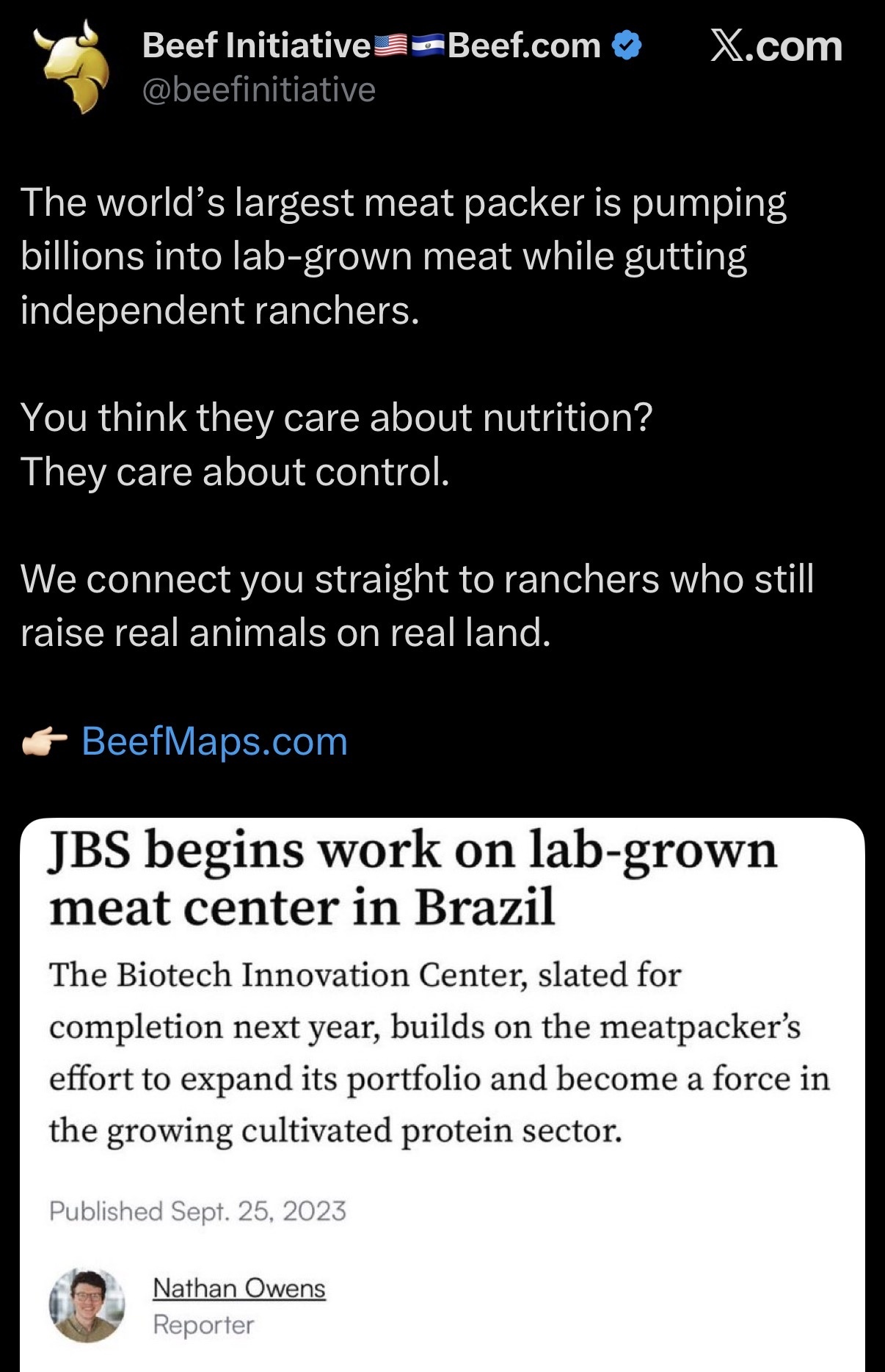 They are part of the monopoly that controls meat prices in the United States and continues putting local ranchers out of business. Now they are going to start making Bill Gates cancer meat?!