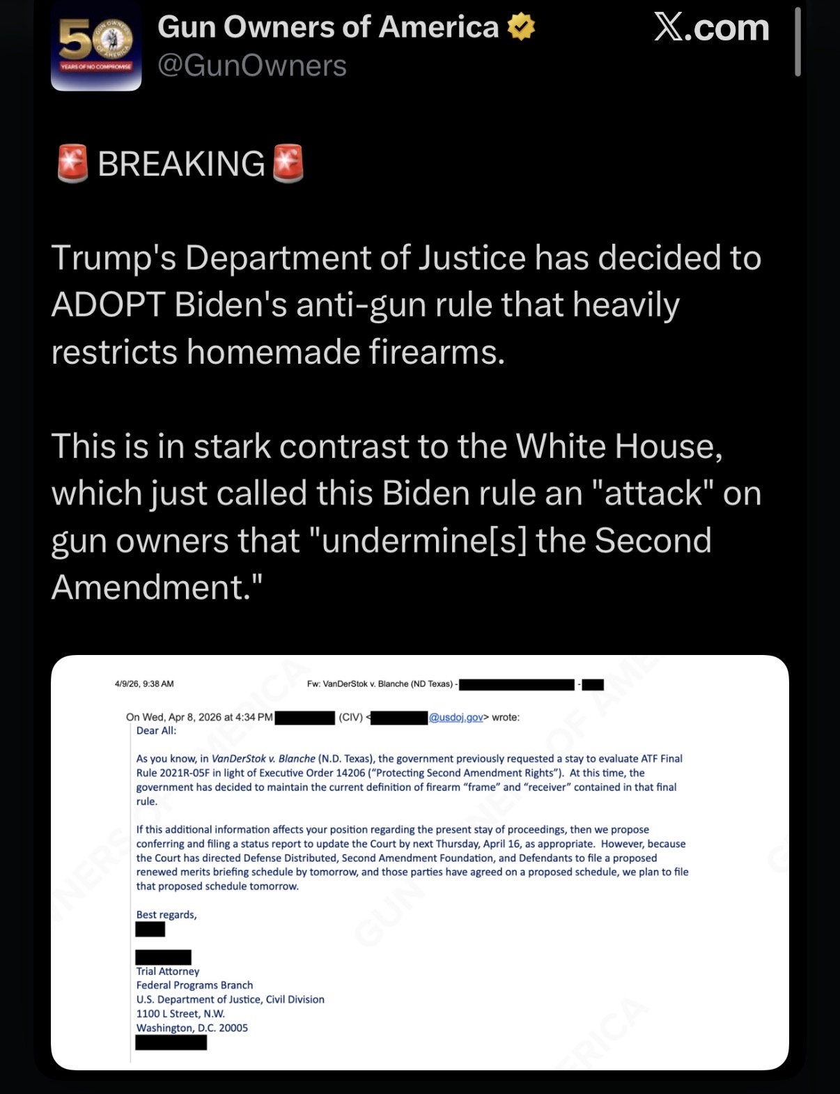 🚹🚹Why has the DOJ declared war on the 2nd Amendment? This internal document from the DOJ indicates that the Trump justice department is pushing and supporting a Biden rule restricting homemade firearms.