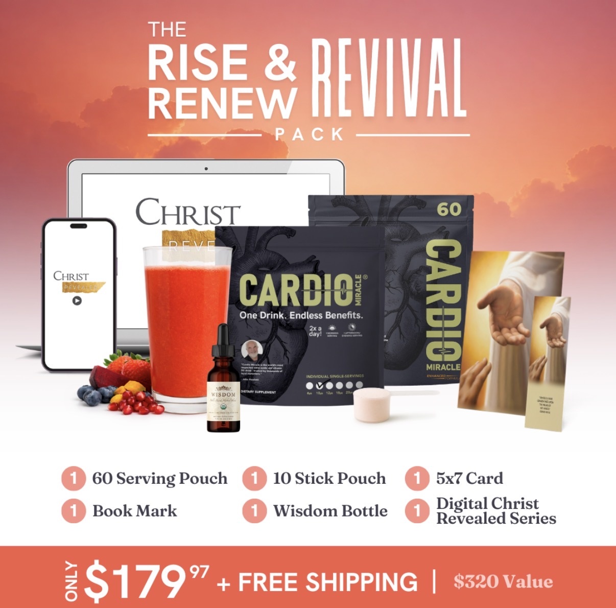 Affiliate linkšŸ‘‰ https://cardiomiracle.com/products/rise-renew-revival-starter-offer-60-serving-pouch-10-single-sticks-1-wisdom-bottle-5x7-card-bookmark-digital-christ-revealed-series?ref=pclxxugt
