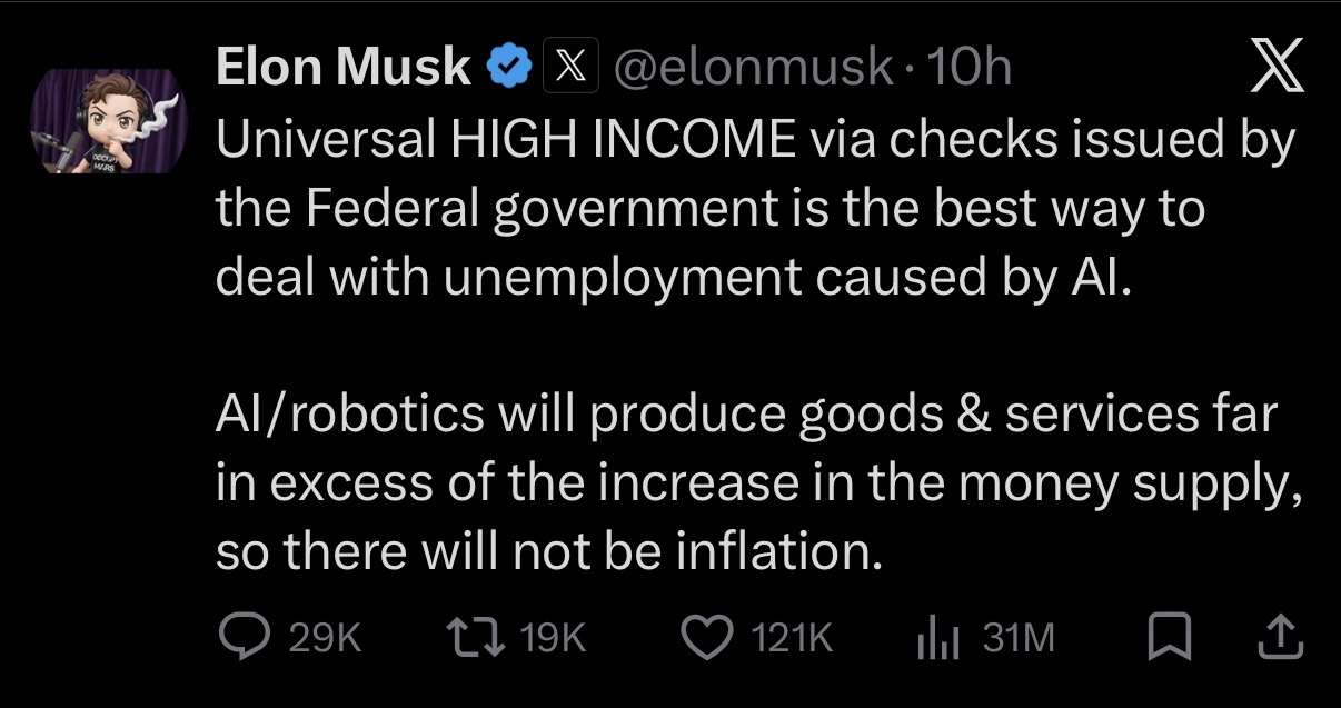 The answer cannot be from income generated by the robots/AI because why would the person that owns the robots/AI and no longer needs people want to fund billions of people? The person that controls the robots and controls the AI controls the world in this scenario and we are supposed to trust that?